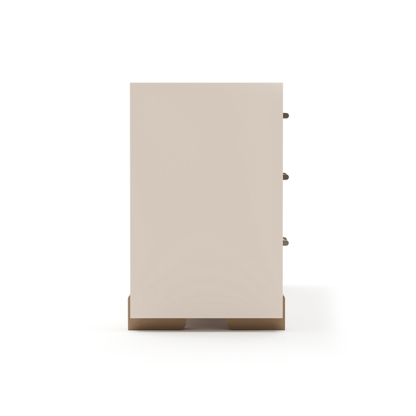 Embrace refined simplicity with the Counter Balance Dresser. Accentuated by a sophisticated Smoked Bronze glass top and finished in luscious Chocolate Koto, Cloud, and Brushed Gold, it adds graceful storage and sophisticated style.