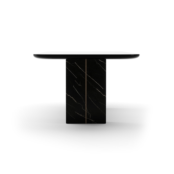 Gather around the refined elegance of the Overlap Rectangle Dining Table Dark. Its stunning Piano Black top, Whisper of Gold accents, and luxurious Nero Marquina pedestals set the stage for memorable dining experiences filled with warmth, sophistication, and lasting conversations.