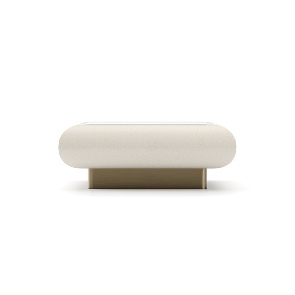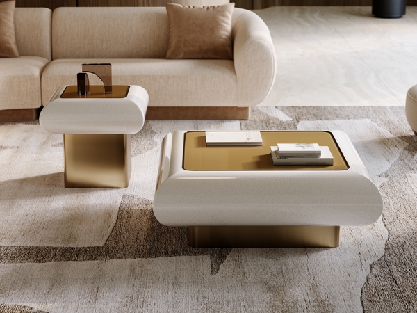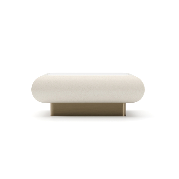 Sophisticated and stylish, the Seta Square Cocktail Table Craze features a Smoked Bronze glass top elegantly combined with a case finished in Ivory Craze and metal trim and base in Brushed Gold. A luxurious accent piece, ideal for modern living spaces.