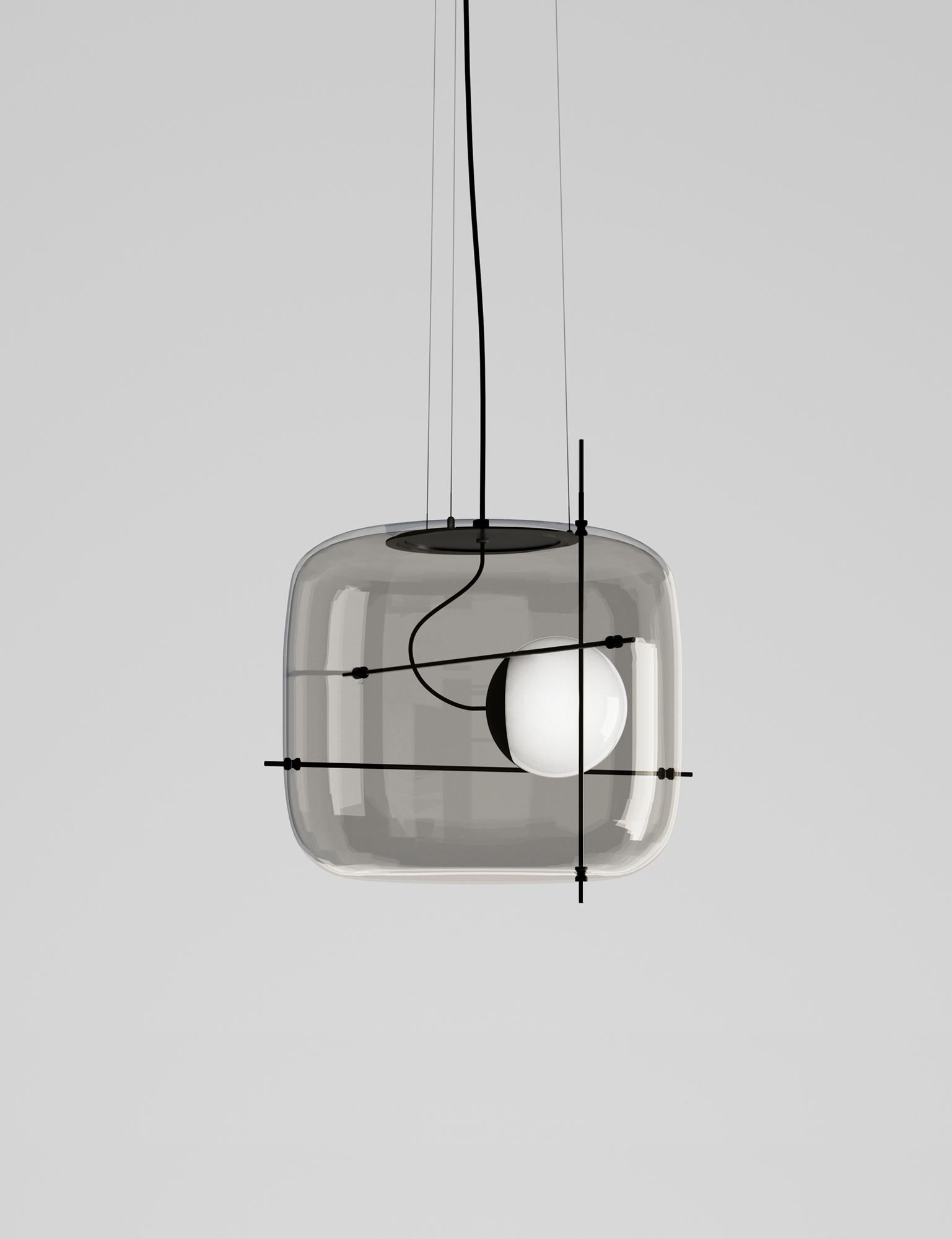 A perfect dialog between different materials and a suspended light source: that is Plot. Inspired by the weaving of oriental bamboo scaffolding, Plot gives a feeling of lightness and suspension, thanks to the play of balances where the light source is supported through the interweaving of the metal rods. Plot combines different materials such as black metal or brass satin finishes with crystal or smoky glass.