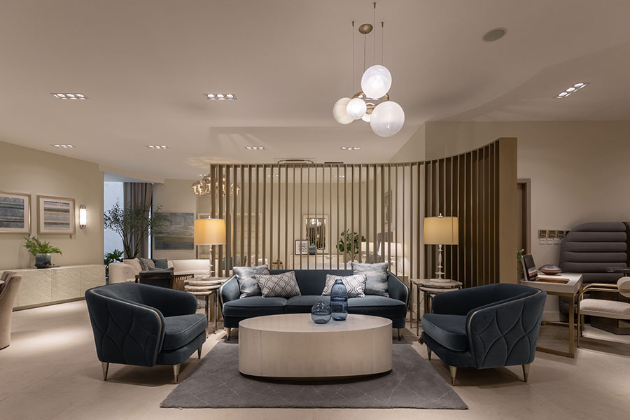 The Puppet Ring collection is based on the idea of creating a frame by combining rings with different diameters, on which crystal balls in three sizes are mounted. The new three suspension lamps of different sizes and shapes also maintain a light and elegant aesthetic by ethereally combining crystal glass, smoked, amber and shaded white with gold and satin black nickel finishes.