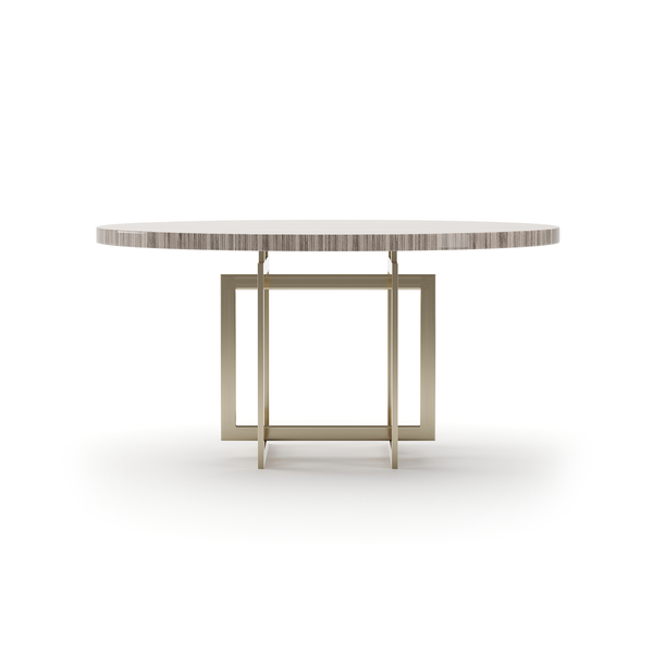 The Wish You Were Here Round Dining Table Light features a Sandstone top and a refined base finished in Whisper of Gold. Its timeless design and luxurious materials make it an elegant centerpiece for your dining room.