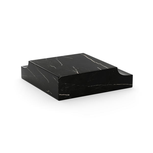 The Corner Wedge Base in Nero Marquina stone offers a distinctive blend of style and versatility. Its expressive Whisper of Gold accents illuminate your dTcor, creating an alluring intersection of luxury and contemporary design.