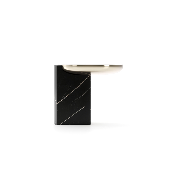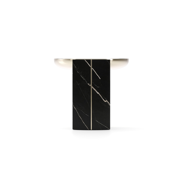 Exuding sophistication, the Overlap Round Side Table Dark features a luxurious Whisper of Gold finished top, beautifully contrasted by a striking Nero Marquina stone base. Perfect for bringing elegance and contemporary refinement to your living space.
