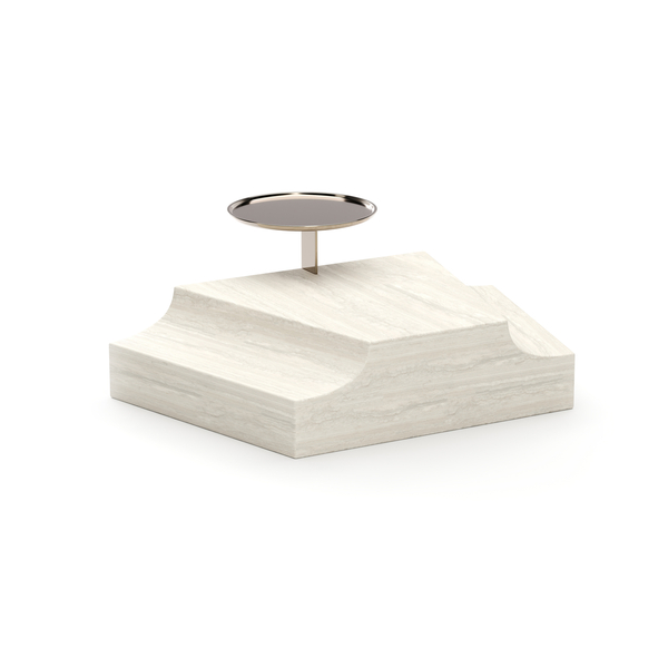Elevate your dTcor with the Triangular Wedge Base crafted from refined unfilled Travertine. Highlighted by the subtle Whisper of Gold detailing, it infuses quiet elegance and modern sophistication into any space.