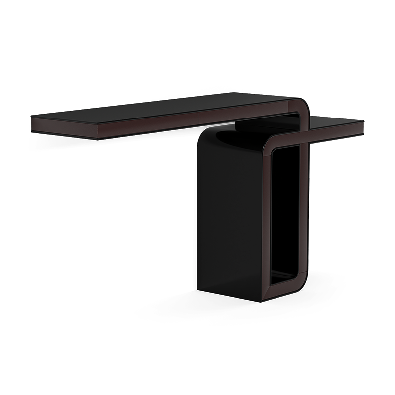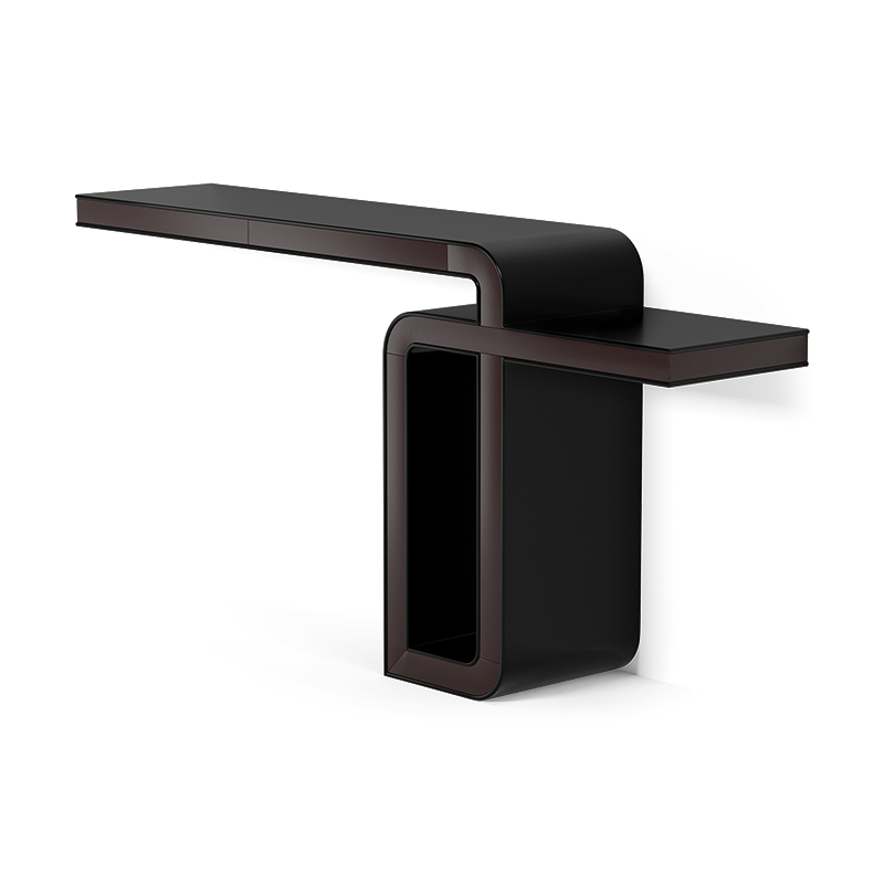 Inspired by modernist architecture, this console table features a bold, looping silhouette that conveys a sense of movement and balance. Its cantilevered design and interplay of materials—leather, marble, or mirror—transform it into a refined statement piece that bridges function and art.