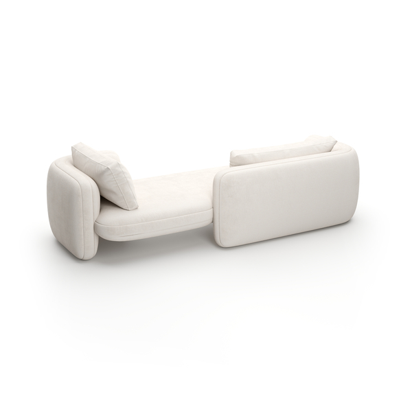 Elevate your relaxation with the Overlap Bedroom Chaise Ecru, featuring full upholstery in ecru linen complemented by an elegant unfilled Travertine stone base. Its refined design provides luxurious comfort ideal for serene retreats.