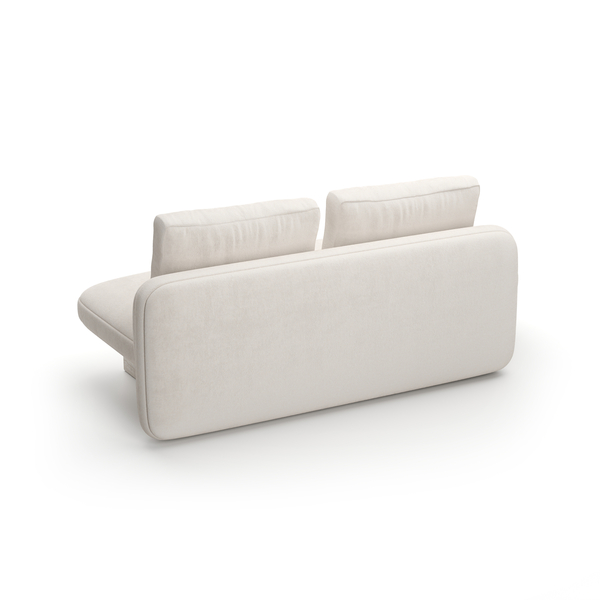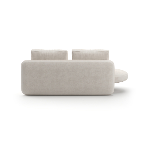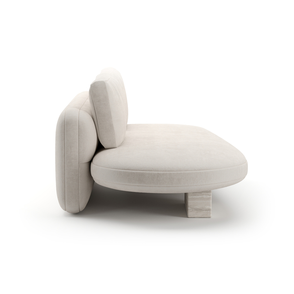 The Overlap RAF Bumper, wrapped in tranquil ecru linen upholstery, offers understated charm. A subtle stone base finish complements its quiet sophistication, enhancing any refined setting.