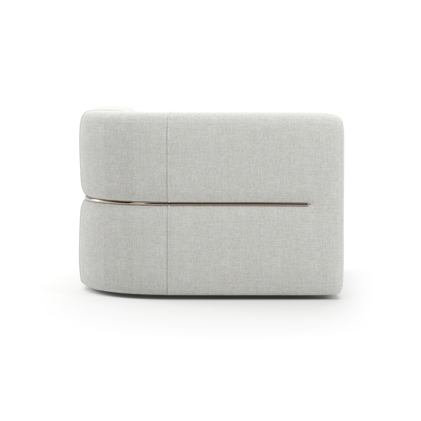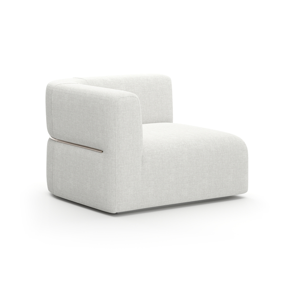 Grace your living area with the Rhythm LAF Corner in luxurious ivory ribbed linen. Its plush upholstery complemented by a Neutral Metallic base and subtle Lucent Bronze accents transforms your space into a refined sanctuary.