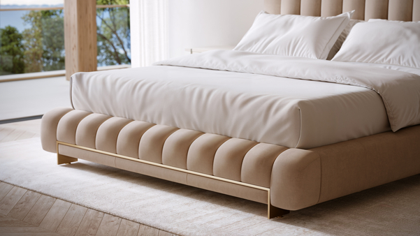 • Upholstered bed. Headboard and footboard with channel tufting.