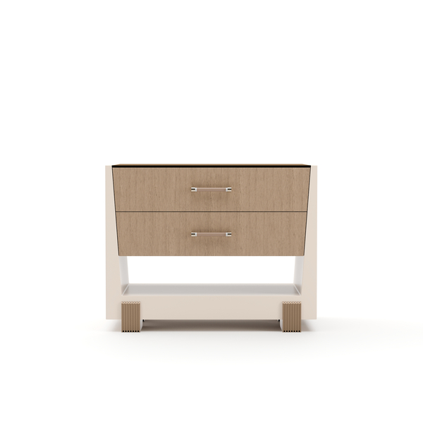 Designed to perfectly complement the Counter Balance Bed, the Counter Balance Large Nightstand brings a refined, modern elegance to the bedroom. Its Smoked Bronze glass top offers a sleek contrast to the rich Chocolate Koto finish, accented with touches of Brushed Gold. Thoughtfully crafted, it balances style and functionality with effortless sophistication.